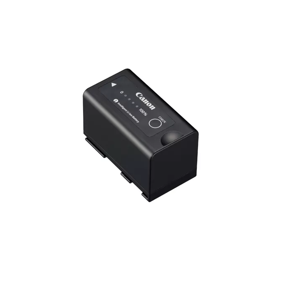 Bateria de íon de lítio recarregável de 7,4V e 4900mAh, compatível com o sistema de Bateria Inteligente da Canon. A bateria possui quatro luzes de LED que indicam a carga restante e comunica essa informação e outros dados para a filmadora, permitindo o monitoramento de status na própria câmera.