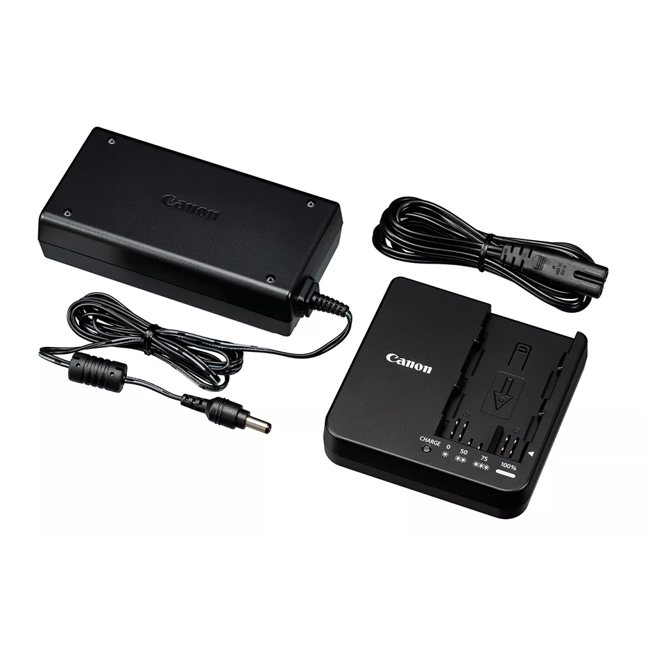 Carregador para uma bateria, alimentado pelo adaptador compacto CA-CP200B.
