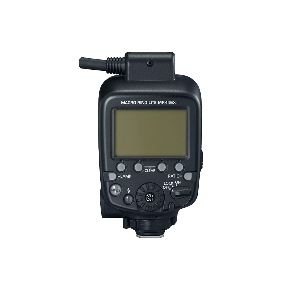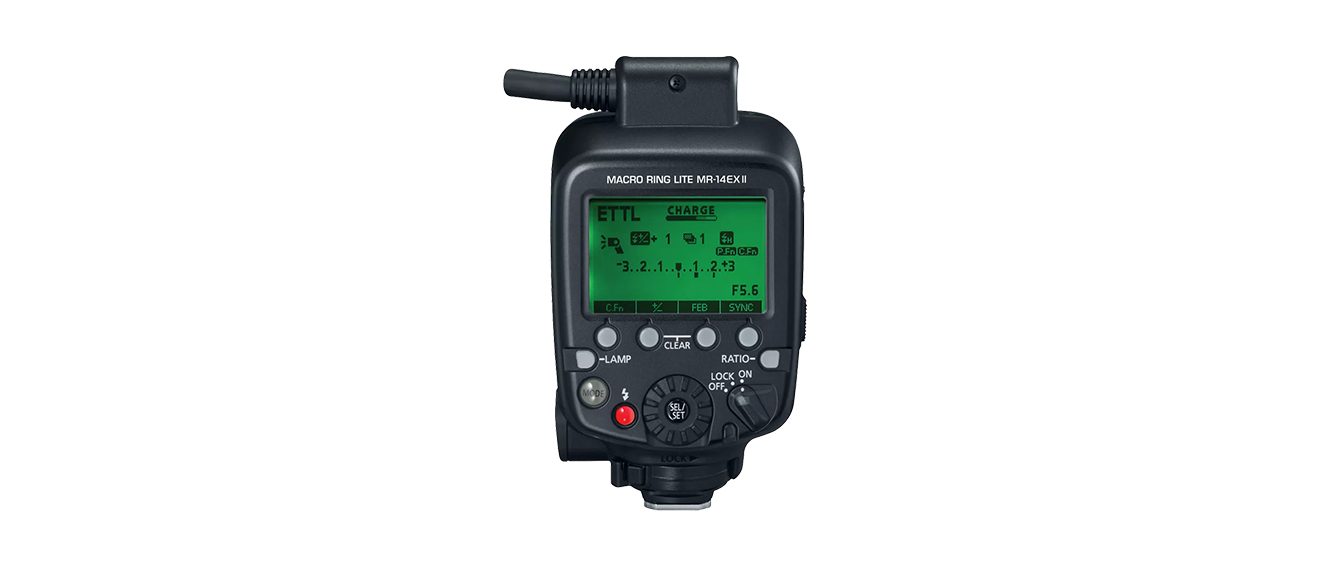 Anel de luz de tubo duplo projetado para fotografia macro com lentes EF Macro; os tubos de flash podem disparar juntos ou de forma independente