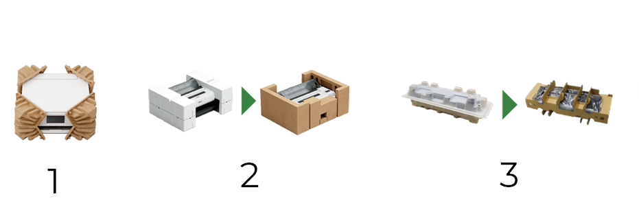 O problema com o papelão ondulado é o seu peso maior, já que geralmente é necessário mais material para alcançar a mesma funcionalidade que o poliestireno expandido. Para reduzir o volume das embalagens, mantendo a funcionalidade, estamos adotando designs de embalagens baseados no uso de papelão ondulado pré-fabricado, o que reduz o peso e ajuda a diminuir as emissões de CO2 no processo de transporte.