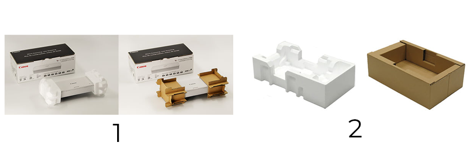 A CANON ELECTRONICS deixou de utilizar espuma de poliestireno e passou a usar papel compostável e reciclável como material de embalagem para seus scanners de documentos R10, P-215II e DR-M140II.