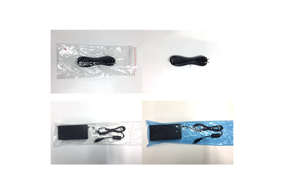 Exemplo de materiais de embalagem para cabos de alimentação e adaptadores CA